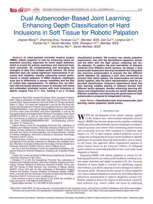 IEEE/ASME Transactions on Mechatronics 2025 | Dual Autoencoder-Based Joint Learning: Enhancing Depth Classification of Hard Inclusions in Soft Tissue for Robotic Palpation